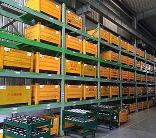 4.可在兩根格檔上加焊鋼板做成梁托,用以承載料箱4個腳,既保證料箱安全落在貨架上,又節(jié)省了成本。