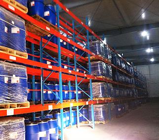 5.6米高位貨架結合雙面木托盤存放桶裝貨物,案例場景證明貨架承載大,安全可靠。